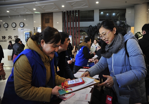 1月26日下午1:30,政协委员们怀着激动的心情,来到大会签到处签到、领取材料。