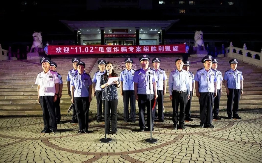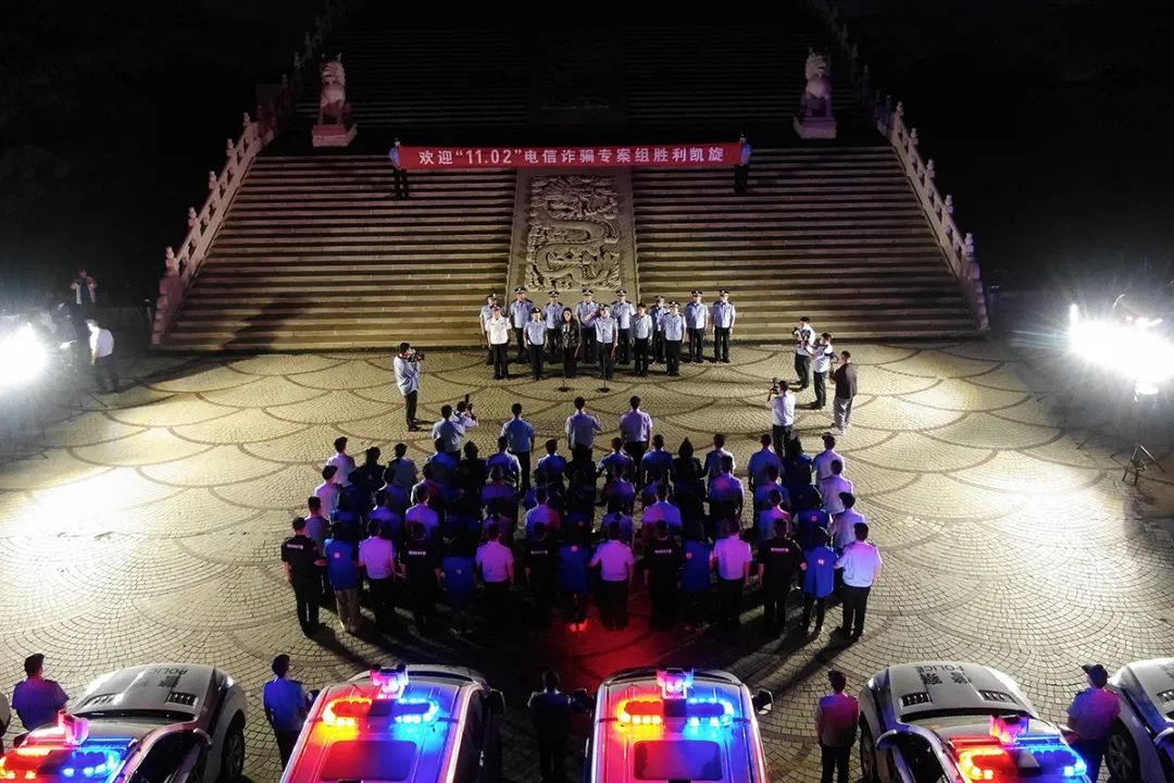 5月19日22时许,博山公安分局举行欢迎仪式迎接“11.2”专案组凯旋。专案组成员万里奔波,远赴广东、福建等地昼夜奋战,圆满完成专案抓捕任务。区委副书记、政法委书记刘青,副区长、公安分局局长宋彬,市公安局网安支队政委苗军,区委宣传部副部长翟明阳和区公安分局其他领导同志出席欢迎仪式。