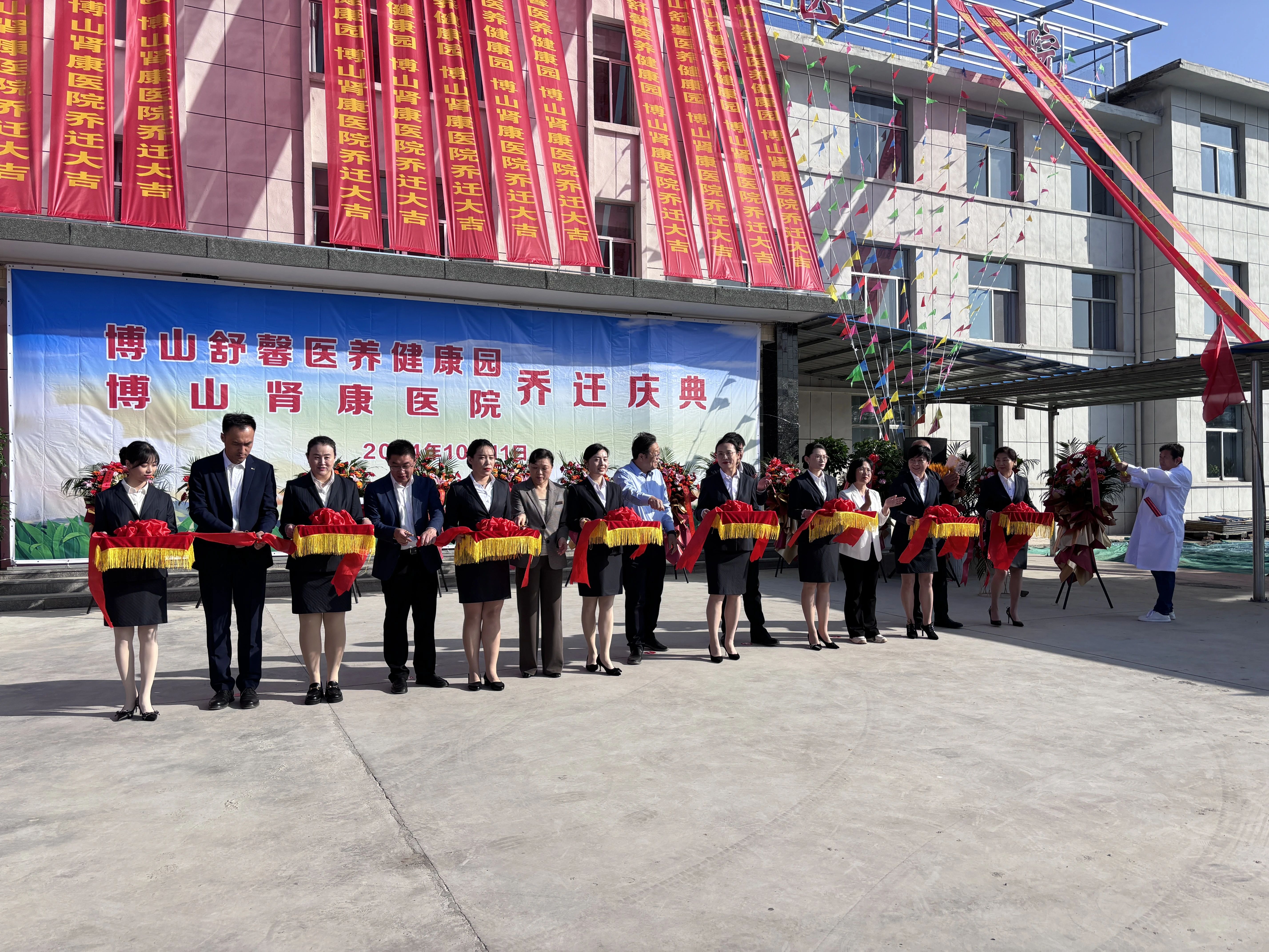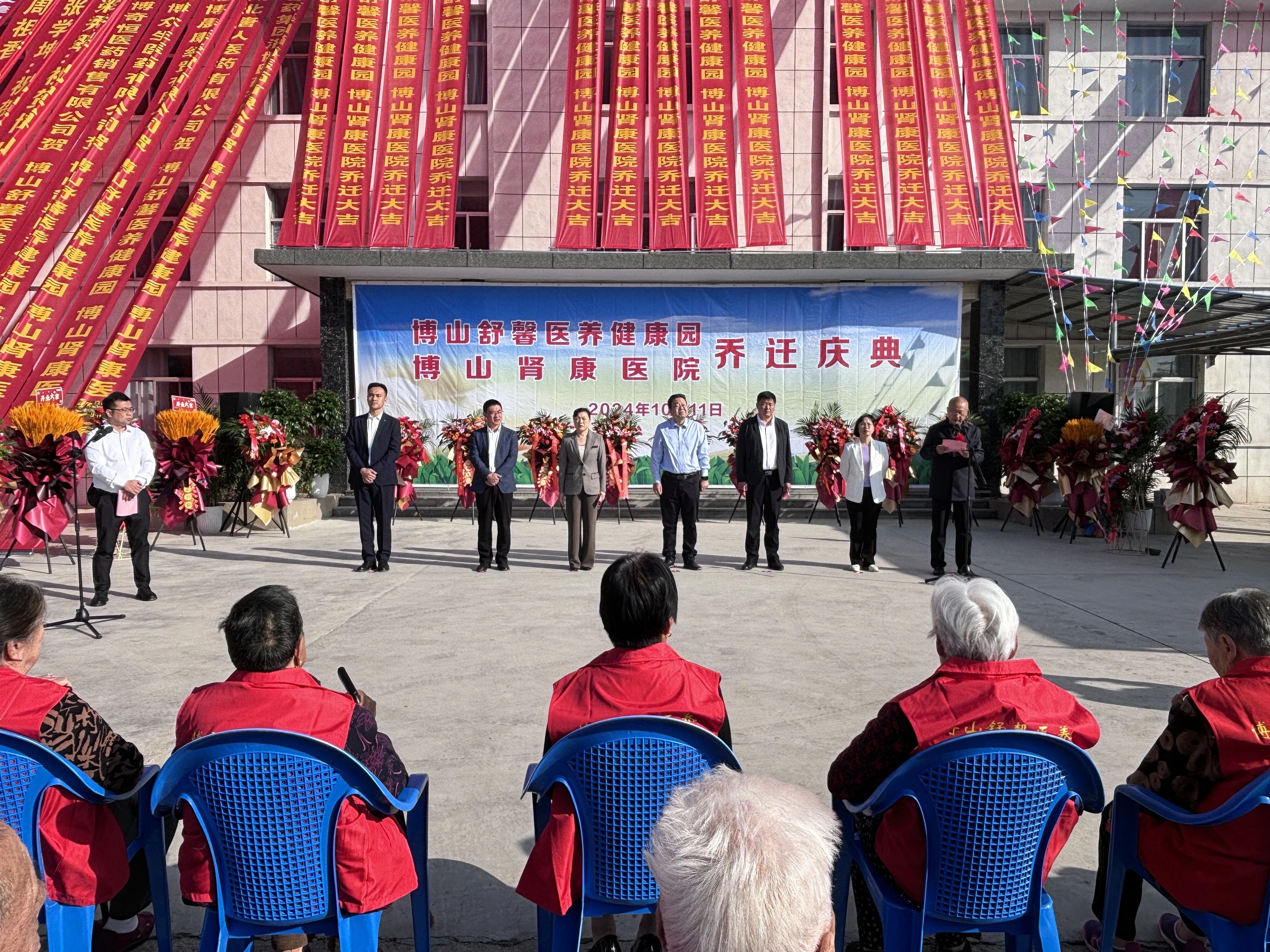 10月11日上午,博山区舒馨医养健康园乔迁盛典正式拉开帷幕,区人大常委会党组书记、主任刘承志,区政府党组成员、副区长国先占,区民政局党组书记、局长穆彩霞,区卫健局党组书记、局长李爱红,区委办公室副主任国辉,山头街道党工委书记李霄鹏出席活动,山头街道党工委副书记、办事处主任于云龙主持典礼,街道各村(社区)代表、媒体与舒馨医养健康园全体员工参加活动。 国先占在讲话中强调,博山区舒馨医养健康园、博山区肾康医院的乔迁,是博山区医疗卫生和养老事业发展中的一件大事,也是提升全区公共服务水平、增进民生福祉的重要举措。舒馨医养健康园集医疗、康复、养老于一体,致力于打造一个温馨、舒适、专业的医养环境,让老年人在这里能够享受到全方位的照顾和关怀。肾康医院则以其专业的医疗团队、先进的医疗设备,为广大患者提供了更加便捷、高效的医疗服务。两家机构的乔迁开业,是我们对“两院一体”医养结合的有力发展,旨在为老年人提供医疗有保障、养老有依靠、健康有指导、护理有温度、生活有照料的“五有”新型健康养老服务。 穆彩霞在讲话中表示,博山区民政局将继续秉承“以人为本、服务民生”的宗旨,加大对医养健康产业的支持力度,推动博山区医养结合事业不断迈上新的台阶。在大家的共同努力下,博山区舒馨医养健康园、博山区肾康医院一定能够成为博山区乃至全市的标杆和典范。 李霄鹏在致辞中表示,此次博山区舒馨医养健康园、博山区肾康医院乔迁项目,能够实现盘活多年闲置资产、解决原产权单位难题、扩大颜神古镇发展空间、实现肾康医院全面升级、提供优质医疗养老服务“一举五得”。同时,将有力促进山头街道医疗与养老等社会资源的深度融合,全方位、全链条、全角度地提升居民的健康福祉,推动“医+养”双提升,精准对接群众对医养服务的迫切需求,进一步增强人民群众的获得感与满意度。 随后,与会领导共同为博山区舒馨医养健康园、博山区肾康医院乔迁开业活动进行剪彩,并参观医养健康园建设情况。 | |||