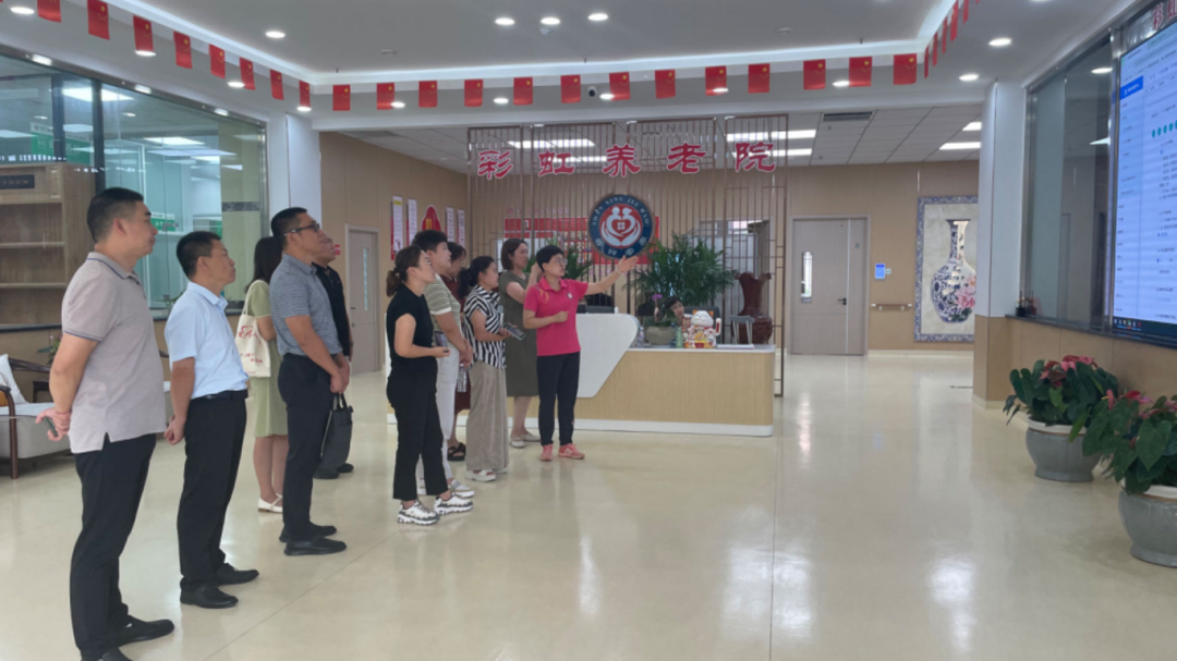 参观现场,彩虹养老院负责人分别就智慧养老院建设、养老院认知症专区建设、运营模式、服务标准、管理制度、人员配置、护理饮食等方面进行了详细的介绍。