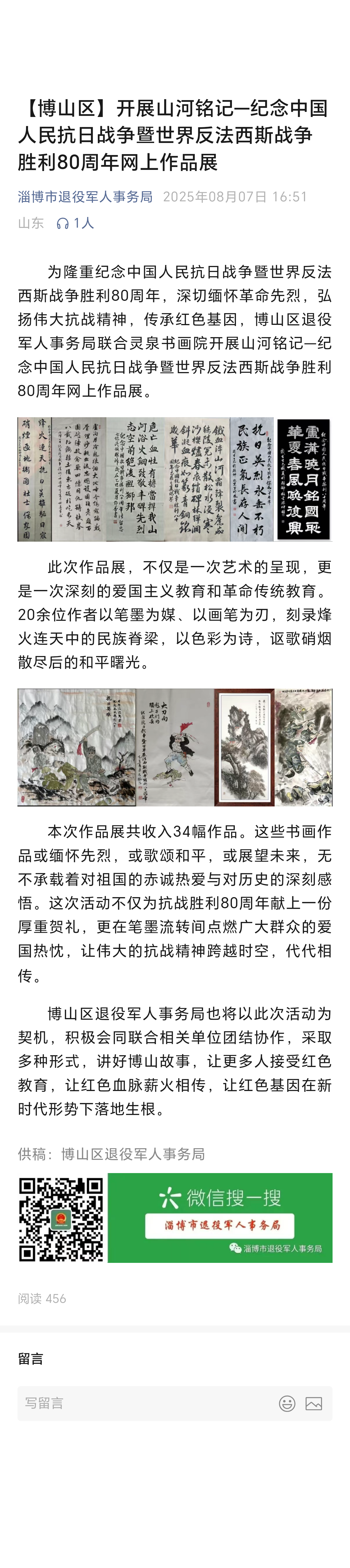 开展山河铭记—纪念中国人民抗日战争暨世界反法西斯战争胜利80周年网上作品展