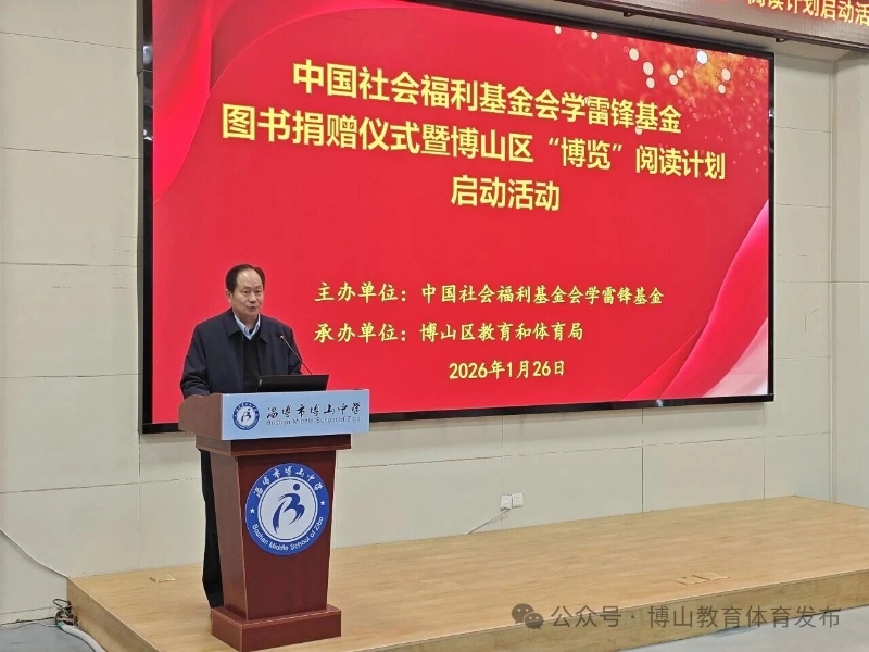 1月26日下午,中国社会福利基金会学雷锋基金图书捐赠仪式暨博山区“博览”阅读计划启动活动在博山中学举行。中国成人教育协会常务副会长、秘书长赵跃进,民革山东省委社会法制委员会副主任周桂华,淄博市教育局总督学、三级调研员赵志远,博山区政府副区长任鸿星等领导嘉宾出席活动,各学校校长、分管校长及师生代表260余人共同见证这一温暖时刻。 任鸿星在致辞中介绍了近年来博山区 “书香校园” 建设的显著成效,包括多所学校获评省级典型案例和阅读素养提升试点等成果。他表示,此次捐赠不仅带来了宝贵的图书资源,更传递了对教育事业的深切关怀和对青少年成长的殷切期望,博山教育系统将把这份关爱转化为育人动力,深耕阅读推广工作。 赵跃进和周桂华分别讲话,表达了对博山教育事业的支持与厚爱,希望同学们以书为伴、以读为乐,在阅读中开阔视野、涵养品格,鼓励教育工作者坚守初心,引导学生养成良好阅读习惯。 捐赠仪式环节,赵跃进、周桂华代表中国社会福利基金会学雷锋基金及相关单位,向博山区教体局捐赠价值51.4万元的图书;徐建堂代表民革山东省直相关支部捐赠价值3万元的图书。 学生代表和学校代表先后发言,表达了对爱心捐赠的感恩之情,表示将珍惜宝贵图书资源,积极参与阅读活动,让书香滋养成长之路。 淄博市教育局总督学赵志远对活动的成功举办表示肯定,他希望博山区以 “博览” 阅读计划启动为契机,进一步完善阅读推广机制,丰富阅读载体,让阅读成为师生终身受益的学习和生活方式。 区教体局局长刘宁在总结中对各学校提出三点要求。一要善用资源,妥善安置图书,让每本图书发挥实效;二要以读育人,将阅读融入日常教学,助力学生全面发展;三要以点带面,推动阅读活动常态化长效化,营造师生共读、家校同读的浓厚氛围。 下一步,博山区教体局将持续深化 “书香校园” 建设,让阅读成为校园文化的鲜明底色,为青少年健康成长保驾护航,推动区域教育事业再谱新篇。 | |||