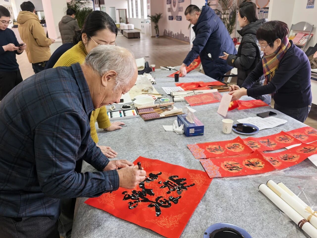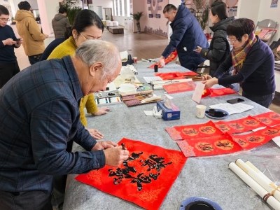 新春启序,年味正浓。为传承中华优秀传统文化,丰富企业退休人员精神文化生活,区人社局精心组织开展2026年企业退休人员“写春联、迎新春”主题活动,让退休老同志们在笔墨书香中喜迎丙午马年新春,感受浓浓的节日暖意。 活动现场暖意氤氲、墨香四溢。十余位书法家及企业退休书法爱好者齐聚一堂,凝神聚力、挥毫泼墨。笔锋流转间,一幅幅寓意吉祥、饱含期许的春联,一个个饱满圆润、遒劲有力的“福”字跃然红纸之上。老同志们一边交流笔法技艺、切磋创作心得,一边沉浸式感受书写乐趣;围观群众不时驻足观赏、轻声赞叹,红火的红纸与浓郁的墨香交相辉映,将新春的喜庆氛围烘托得愈发浓厚,每一笔、每一划都凝聚着对新年的美好祈愿,彰显着退休人员对生活的热爱与热忱。 此次活动,以文化为媒搭建起交流平台,既让企业退休人员发挥余热、展现风采,在书法创作中感受传统文化魅力,丰富了晚年精神生活,也通过手写春联这一充满温度的形式,将党和政府的关怀与新春祝福送到群众心坎上。 下一步,区人社局将持续聚焦企业退休人员精神文化与服务保障需求,不断创新服务形式、丰富服务内容,推出更多接地气、有温度、有内涵的文化惠民活动,切实提升退休人员的获得感、幸福感和归属感,推动中华优秀传统文化在新时代焕发新的生机与活力。 | |||