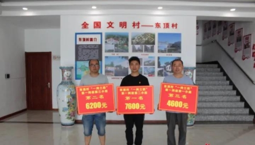 △东顶村“一网三联”季度表彰大会,获奖的网格小组得到现金奖励
