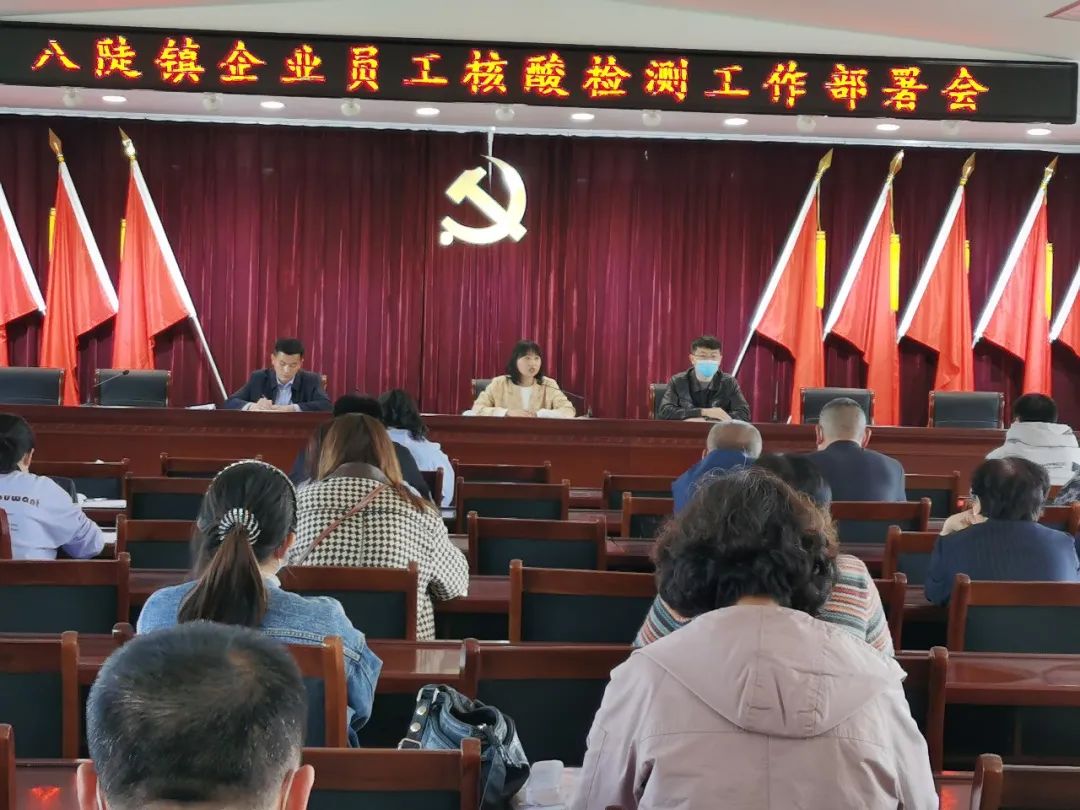 为保障核酸检测工作顺利进行,八陡镇先后召开企业员工核酸检测部署会,对涉及村、社区及企业有关负责人进行专门培训,确保核酸检测安全又快速。