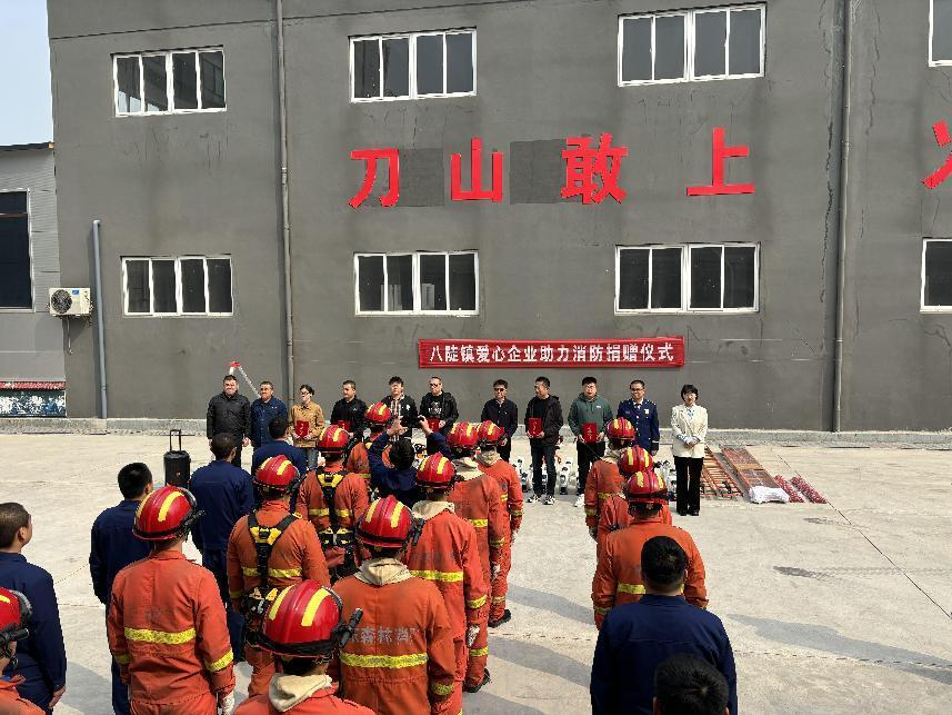4月9日上午,博山区八陡镇举办了一场爱心捐赠活动,淄博市博山东方化工厂、淄博宝来霖机械铸造有限公司、淄博旭烨瓷业日用陶瓷有限公司等8家企业向森林消防中队捐赠了多功能水枪、分离式担架、耐高压快速插口水带等一批消防应急救援器材,为八陡镇消防安全建设作出积极贡献。