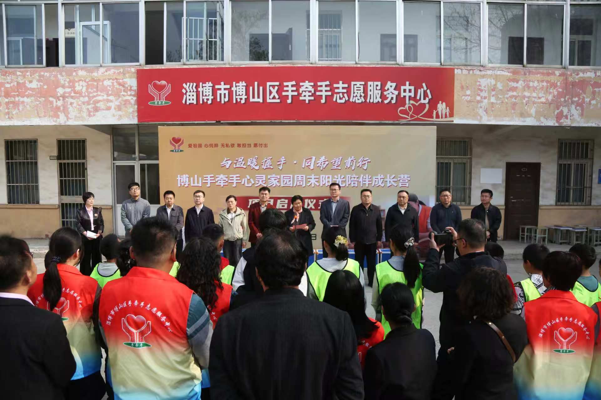 启动仪式上,相关领导发表致辞,对项目启动表示热烈祝贺,深刻阐述了青少年成长关怀工作的重要性,明确了项目的核心意义与发展方向,希望成长营能够精准对接青少年需求,通过多样化的陪伴服务,滋养青少年心灵、助力青少年全面发展。随后,出席领导共同为项目启动揭幕,标志着博山手牵手心灵家园周末阳光陪伴成长营项目正式步入落地实施阶段。