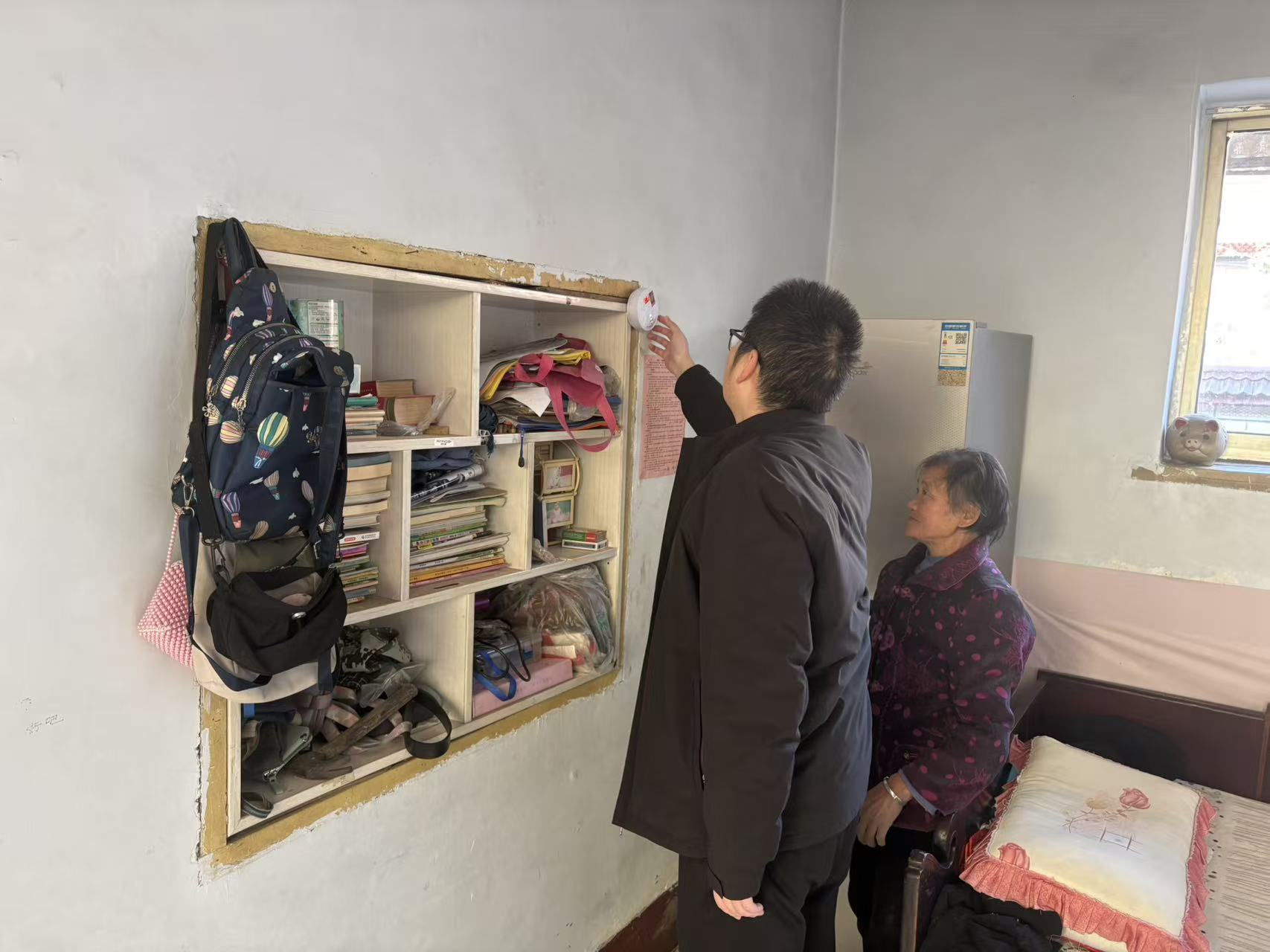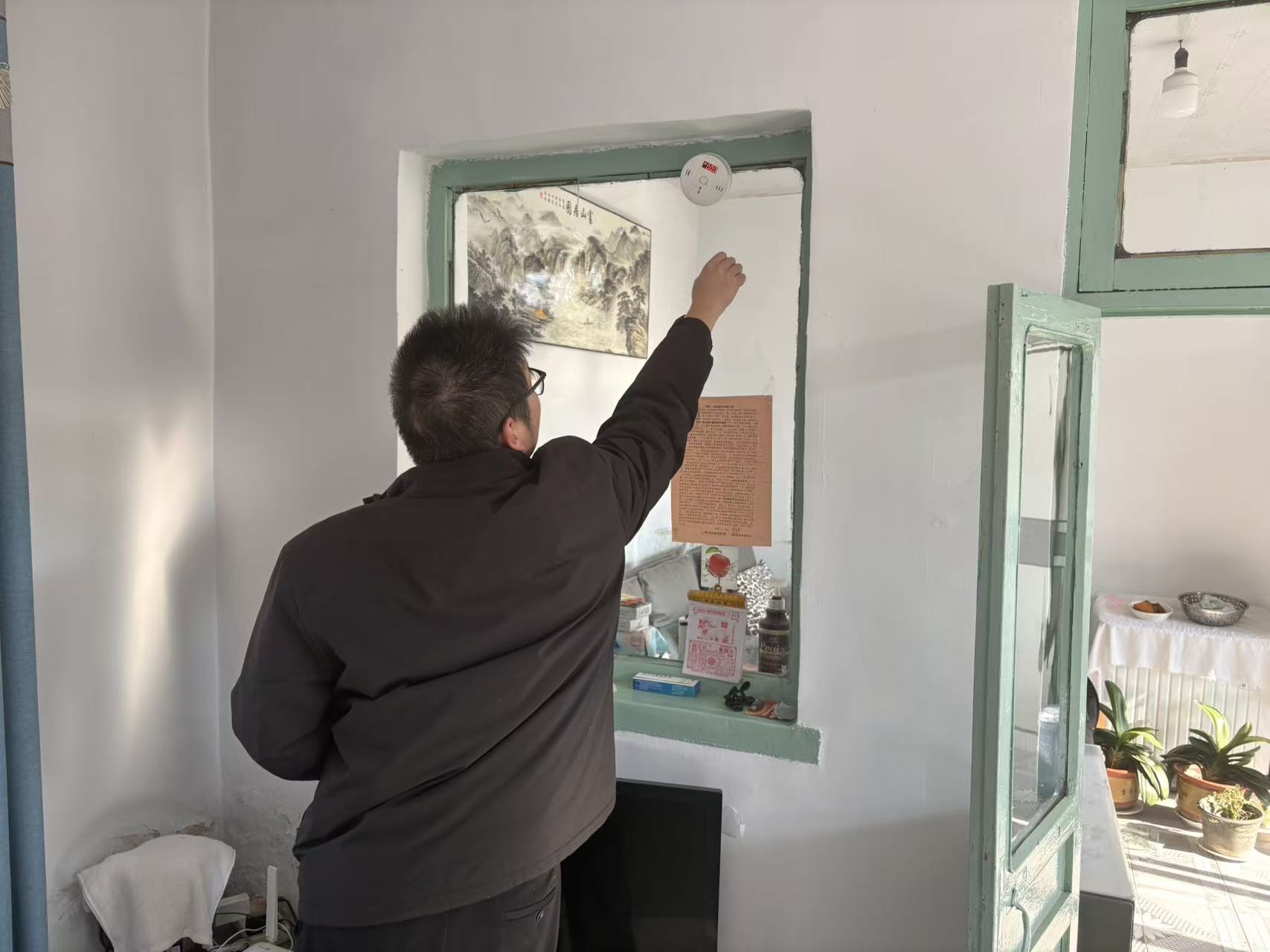 11月21日,城东街道党工委委员李硕走访查看荆山片区燃煤取暖用户一氧化碳报警器安装使用情况;