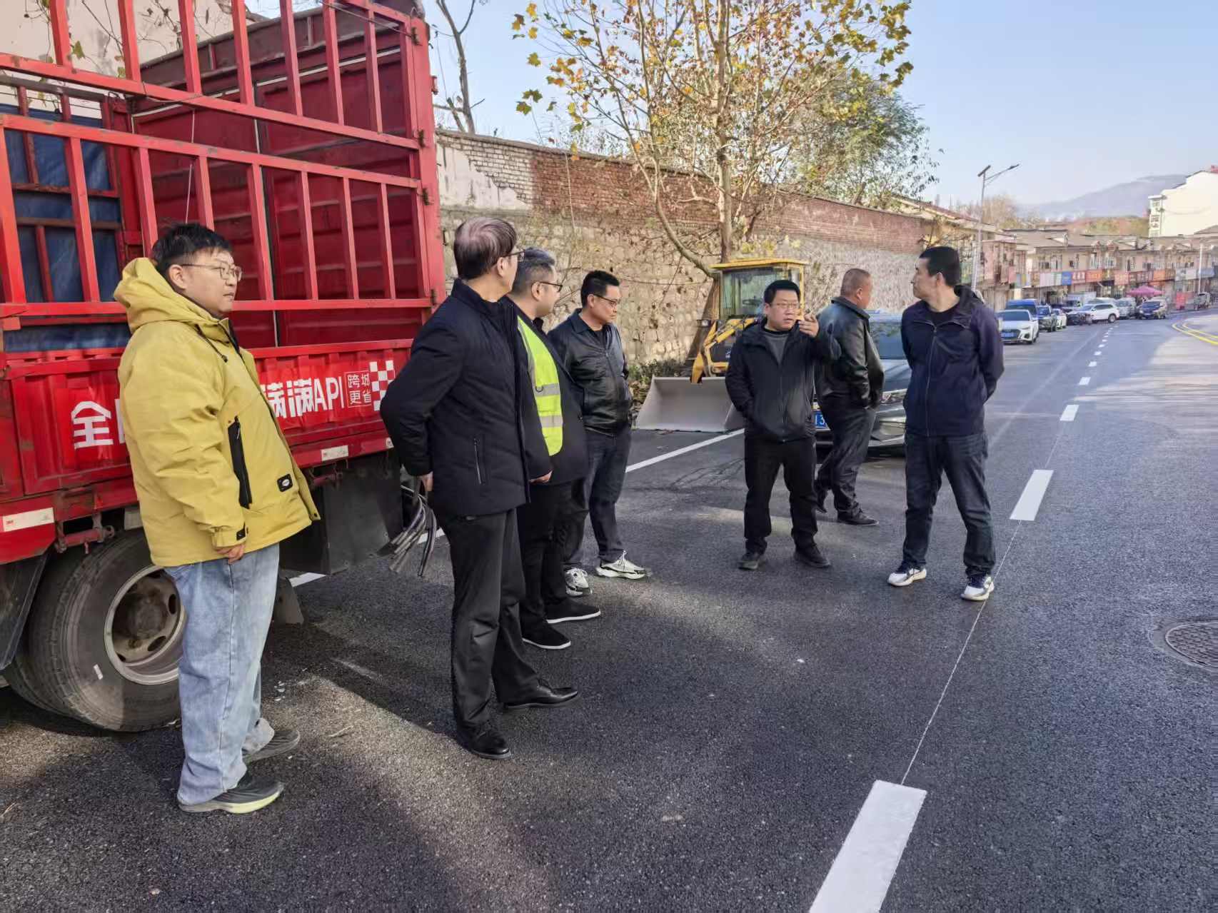 4.11月21日,城东街道党工委副书记黄帅与市政园林、孝水公司等部门对窝良路提升工程进行现场验收。