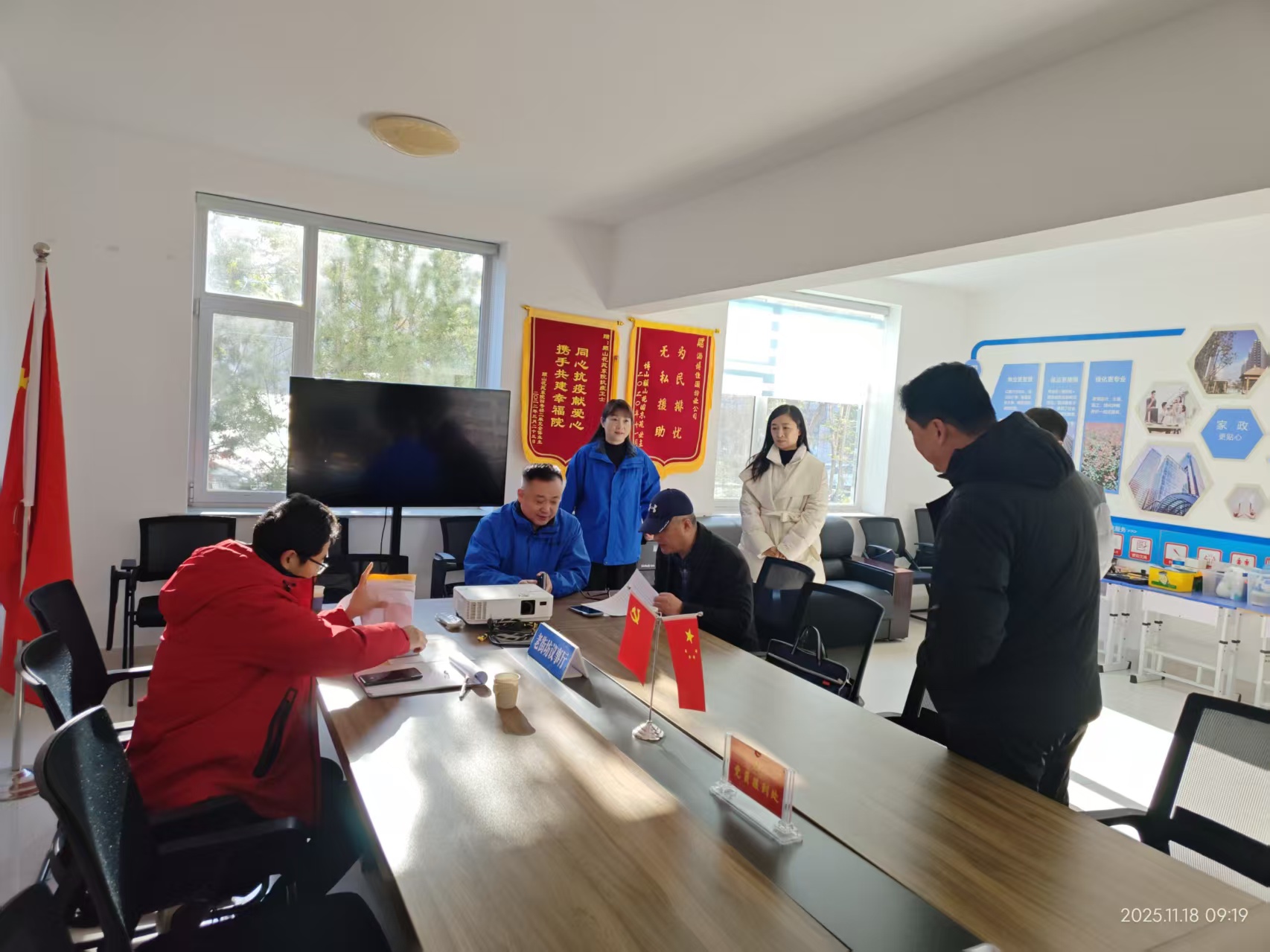 1.11月18日,市城市管理局、山东城市建设职业学院专家到颜山花园东苑小区开展“齐鲁红色物业”示范点、省管党费支持项目动态复查,城东街道党工委委员伊佳陪同;