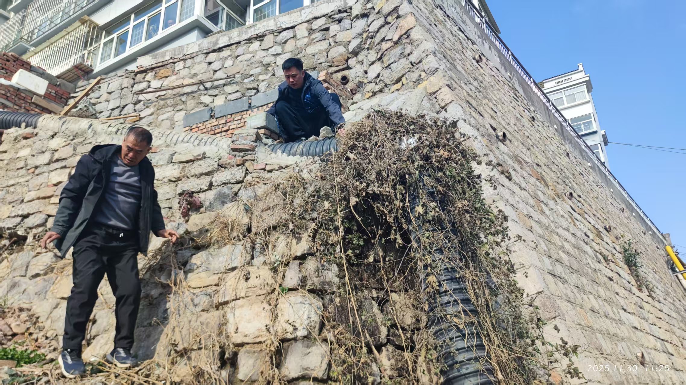 2.11月26日,城东街道党工委副书记黄帅到工陶宿舍查看受损堰墙,现场制定维修方案;