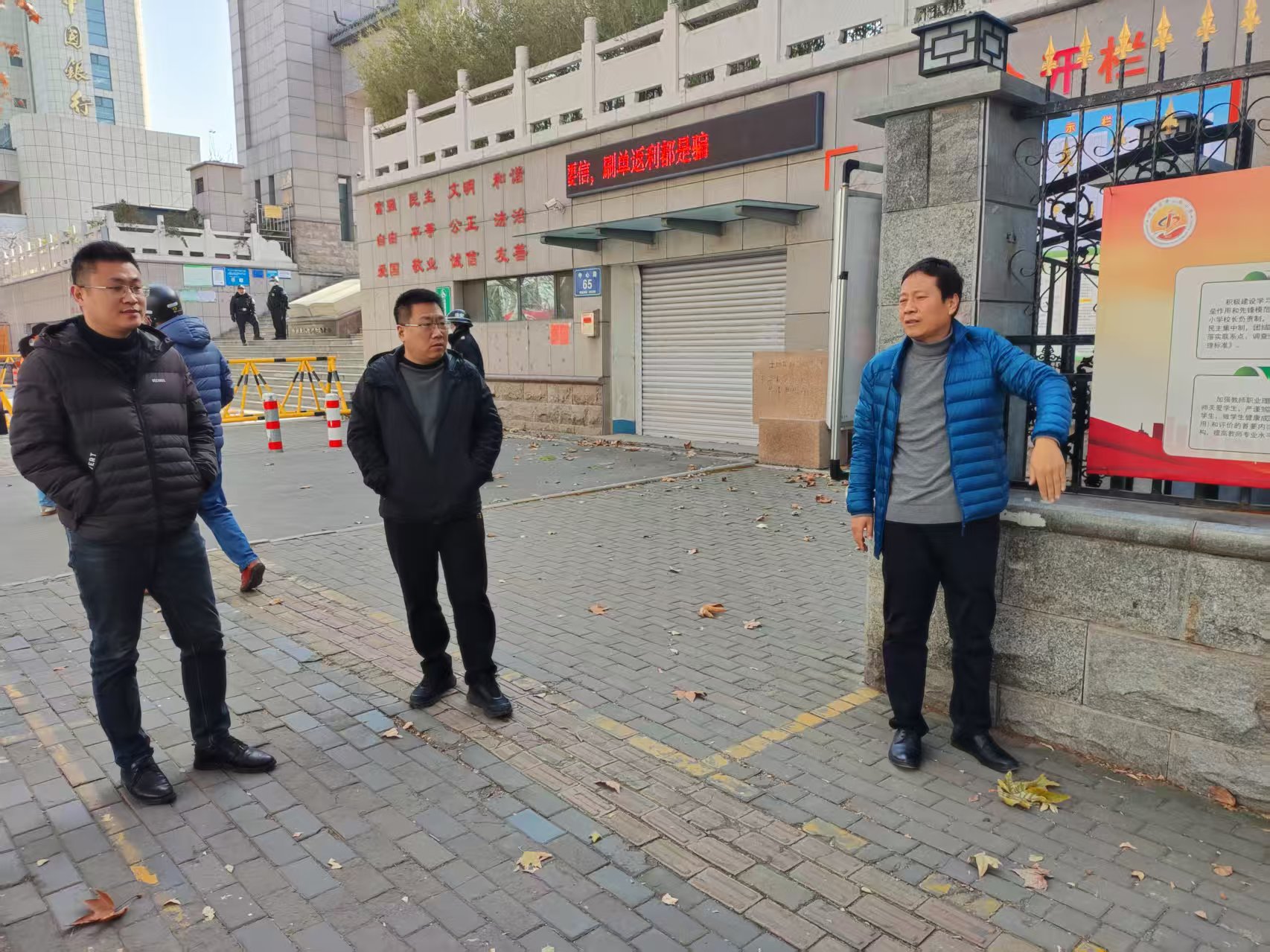 4.11月28日,城东街道党工委副书记黄帅,办事处副主任赵兴发到辖区考院小学、中心路小学、五岭路小学对接校门口安装遮雨遮阳棚具体位置;