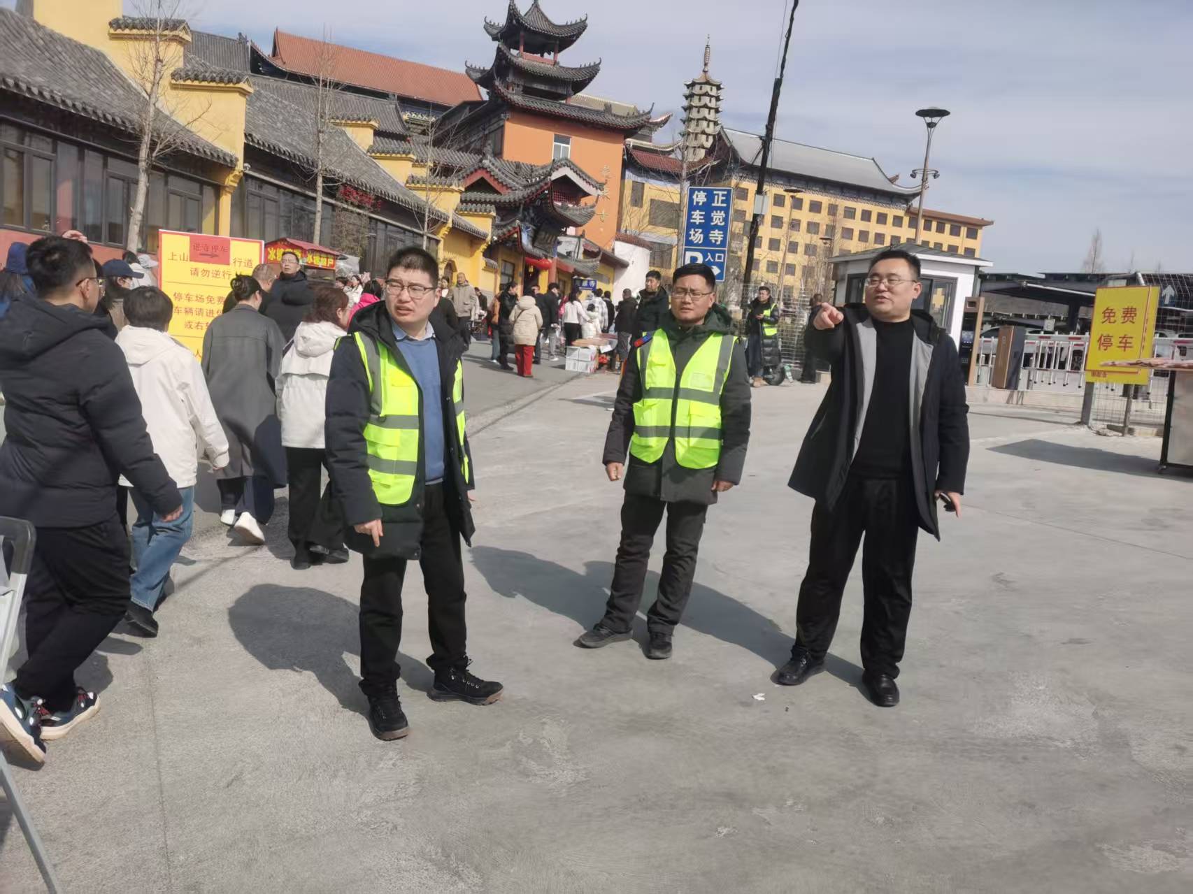 6.春节假期期间,城东街道工作人员在正觉寺和龙泉寺周边值班保障交通;