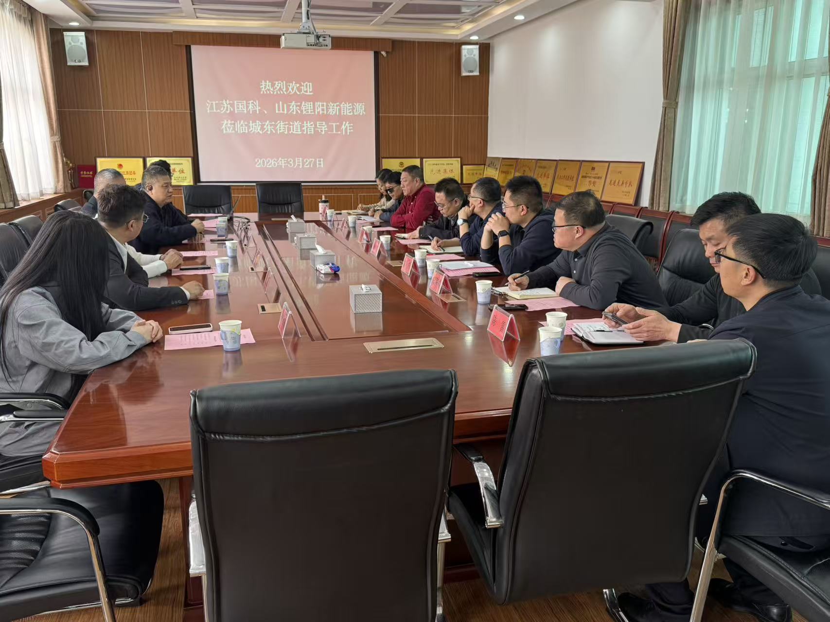 7.3月27日,城东街道党工委书记许乐意、街道办事处主任刘栋邀请发改能源办、商务局、投资促进中心等部门与江苏国科产业投资集团、山东锂阳新能源开发有限公司洽谈储能招商项目;