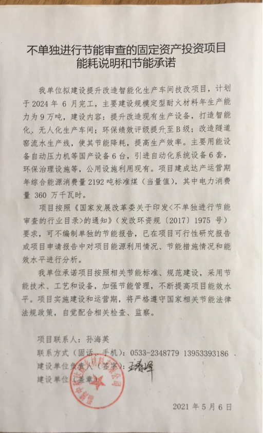 淄博中科达耐火材料有限公司智能化生产车间提升改造项目
