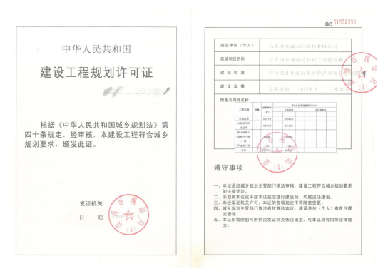 鲁桥新材料新型节能耐火材料智能化生产线项目建筑工程规划许可证