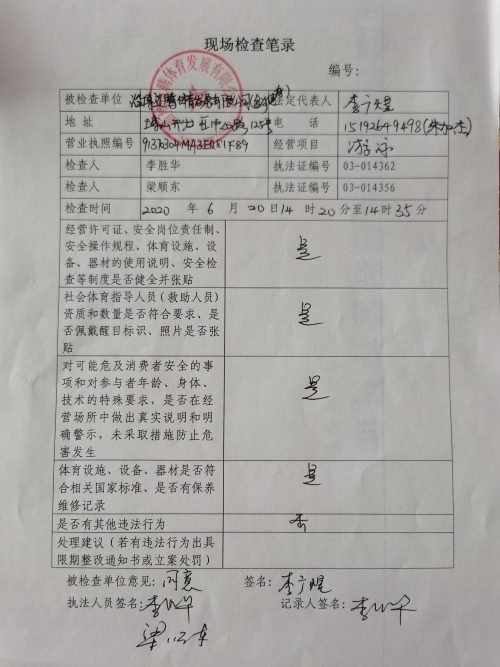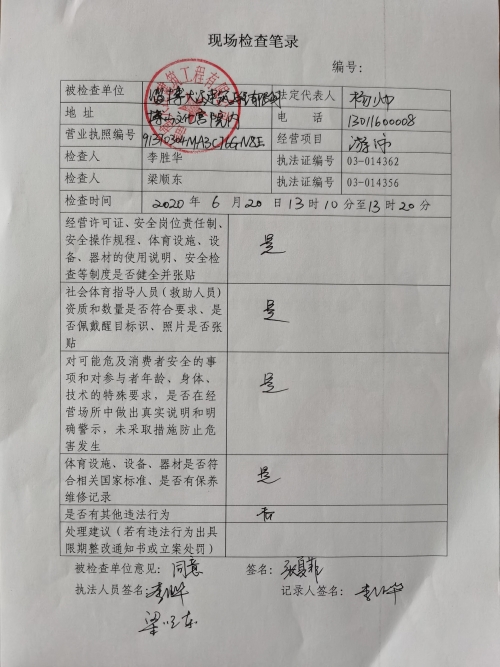 6月20日,局里抽取执法人员对我区迈腾游泳池、文化宫游泳池的安全器械、救生员到岗等情况进行检查。