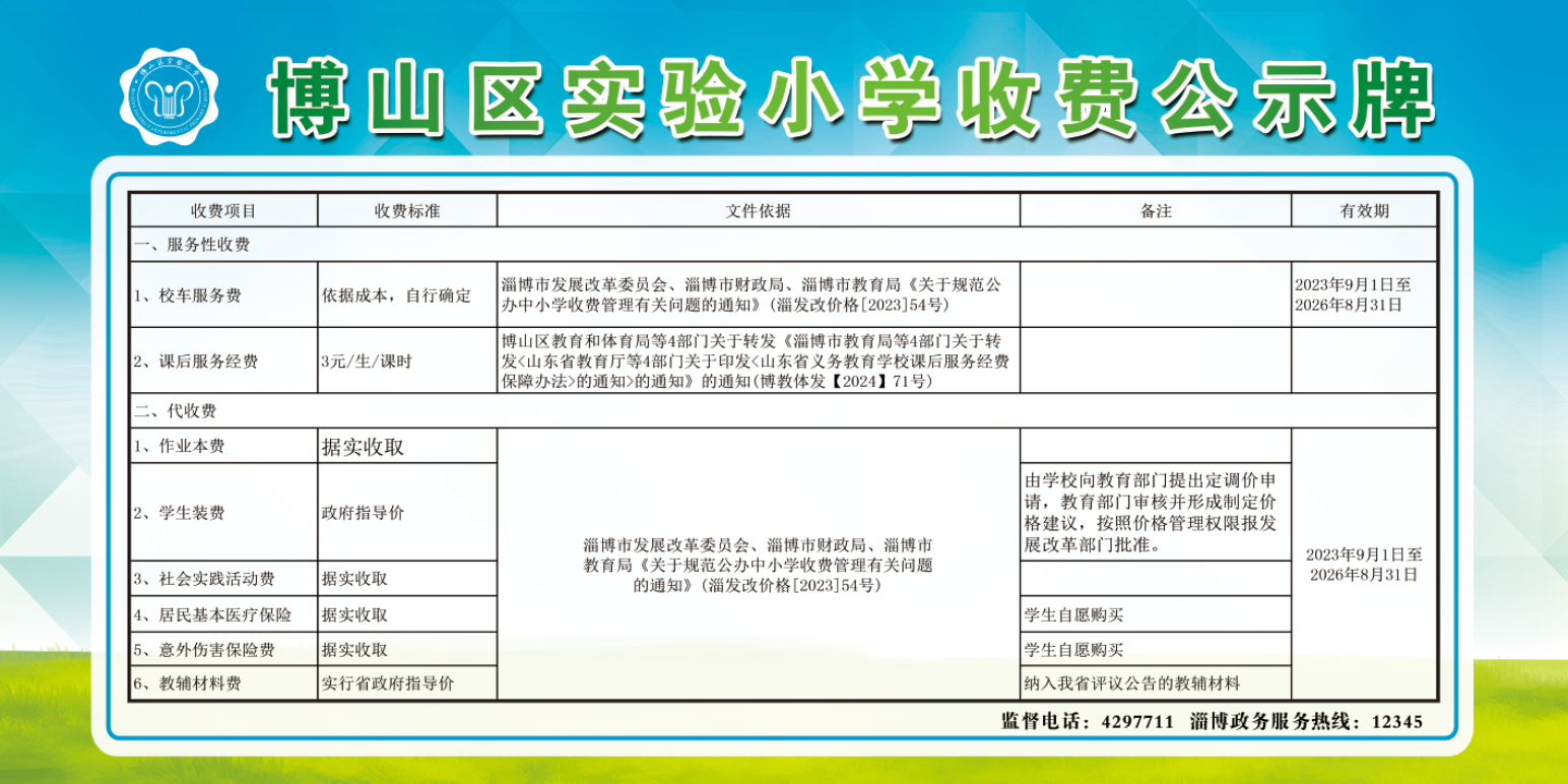博山区实验小学收费公示牌