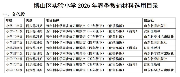 | 标题: | 博山区实验小学 2025年春季教辅材料推荐选用目录公示 | ||