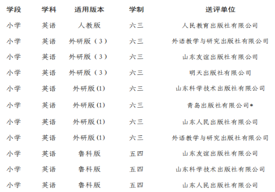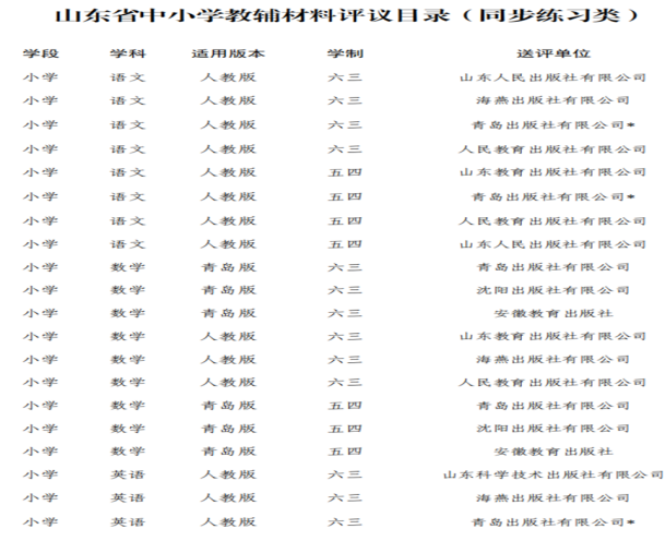 一、 山东省中小学教辅材料评议目录(小学)