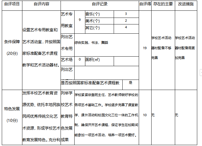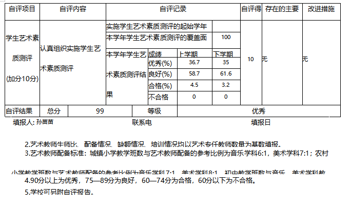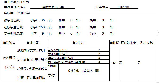 淄博市博山小学艺术教育工作自评报表