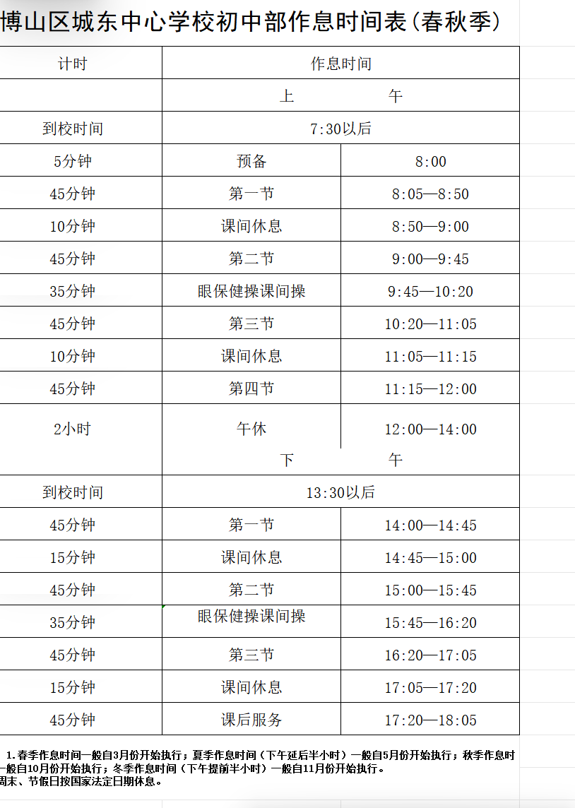 博山区城东中心学校作息时间表公示