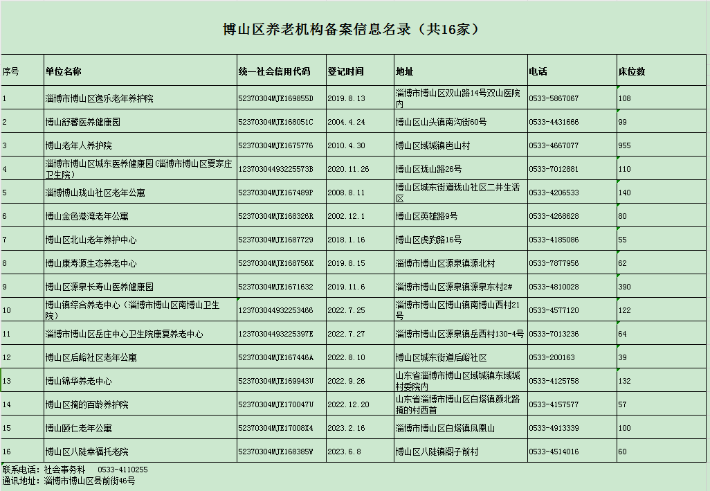 2023年博山区养老机构备案名录