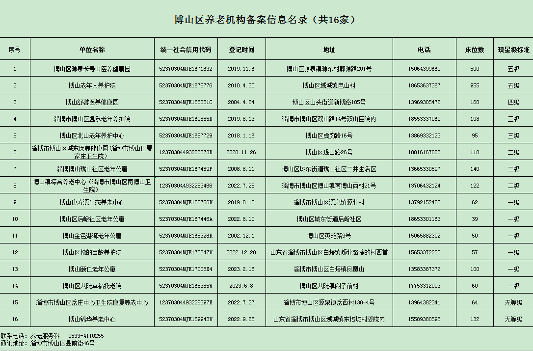 2026年博山区养老机构备案名录