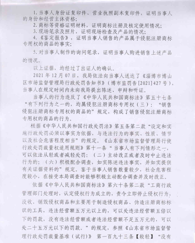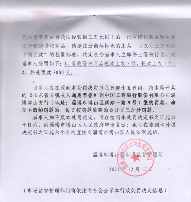 周国龙销售侵犯注册商标专用权的商品案处罚信息公示