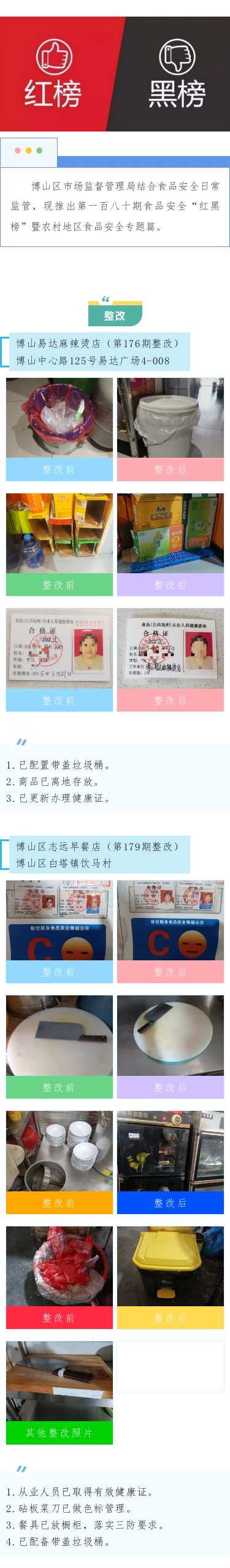 博山区市场监督管理局第180期食品安全“红黑榜”