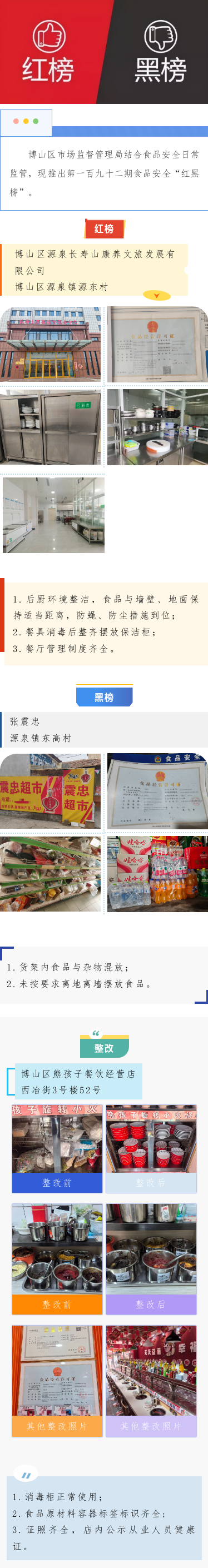 博山区市场监督管理局第192期食品安全“红黑榜”