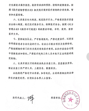 博山区石马卫生院依法执业自查——医疗机构依法执业承诺书