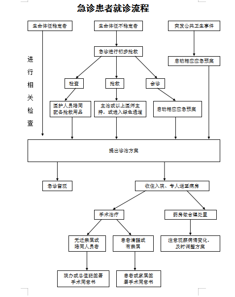 1、患者持有效证件在预检分诊查验→诊室就诊医生开具单据→收款处缴费报销→医技科室检查→诊室开具处方→收款处缴费报销→药房取药→离院。 2、患者持有效证件在预检分诊查验→诊室就诊医生开具处方→收款处缴费报销→药房取药→离院。 3、患者持有效证件在预检分诊查验→诊室就诊医生开具单据→收款处缴费报销→医技科室检查→如需住院诊室医生开具住院证→去住院处办理入院手续→相应病区住院。 |