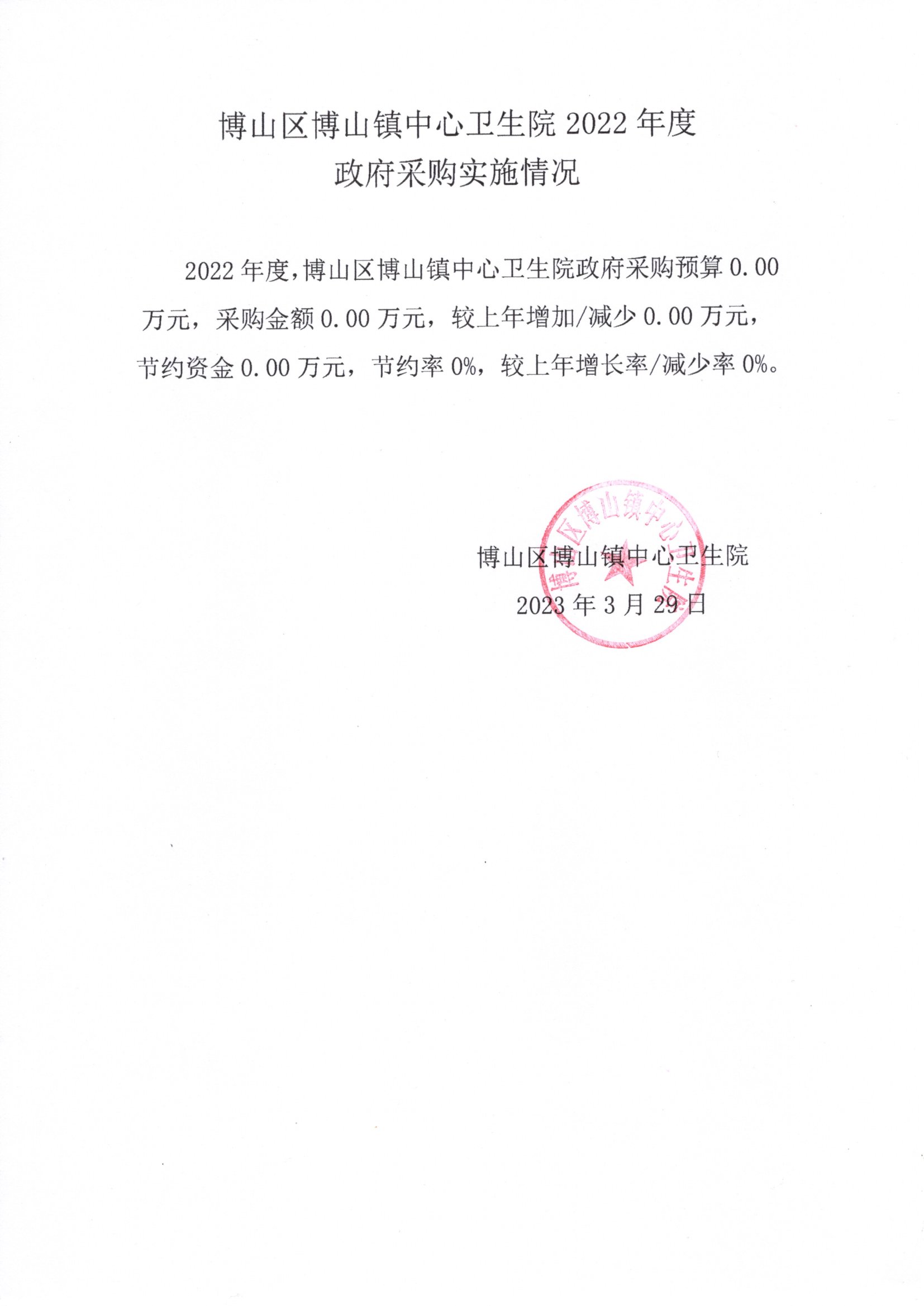 博山区博山镇中心卫生院2022年度政府采购实施情况