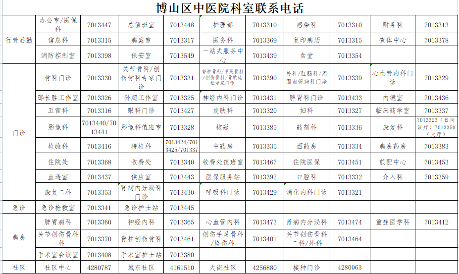 博山区中医院科室咨询电话公示如下(工作日周一至周五全天,周六上午)。
