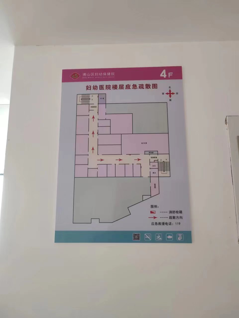 博山区妇幼保健院各楼层明显位置标识突发事件的应急疏散安全出口