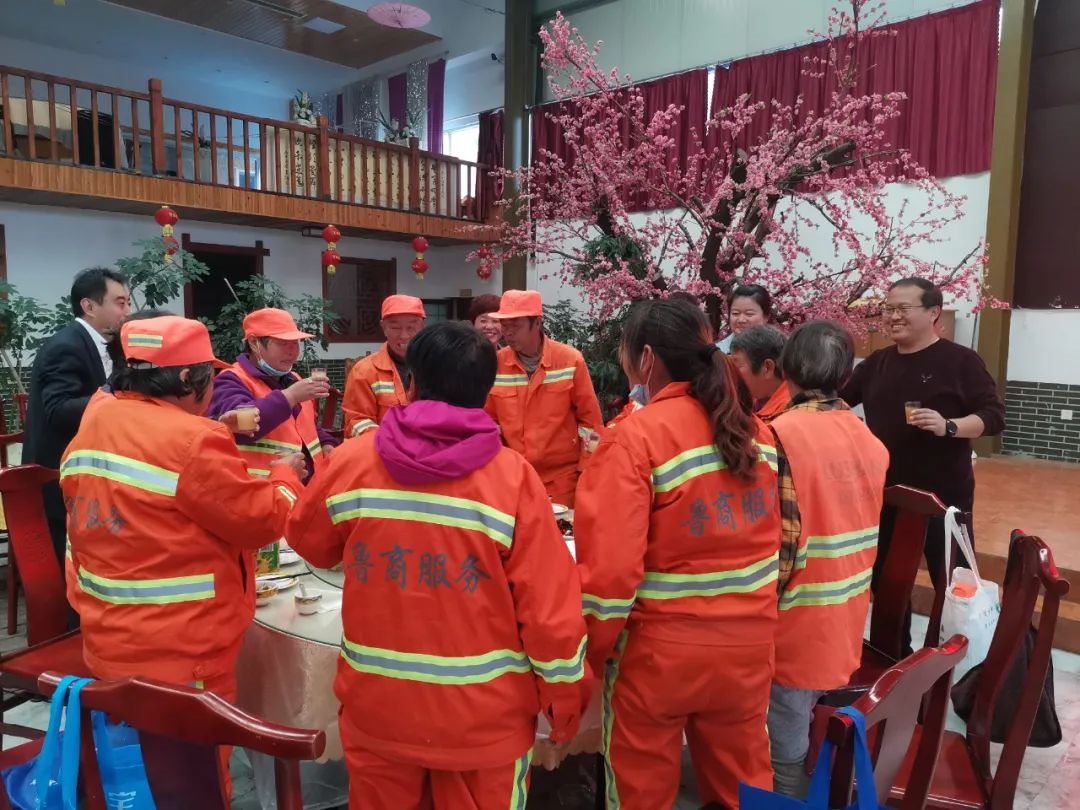 会上,鲁商公司负责人殷允彬对环卫工人的付出给予充分肯定,希望大家能够再接再厉,不负党委政府的重托。现场表彰了4名优秀环卫工人,全镇100多名环卫工作者欢聚一堂,共庆节日。