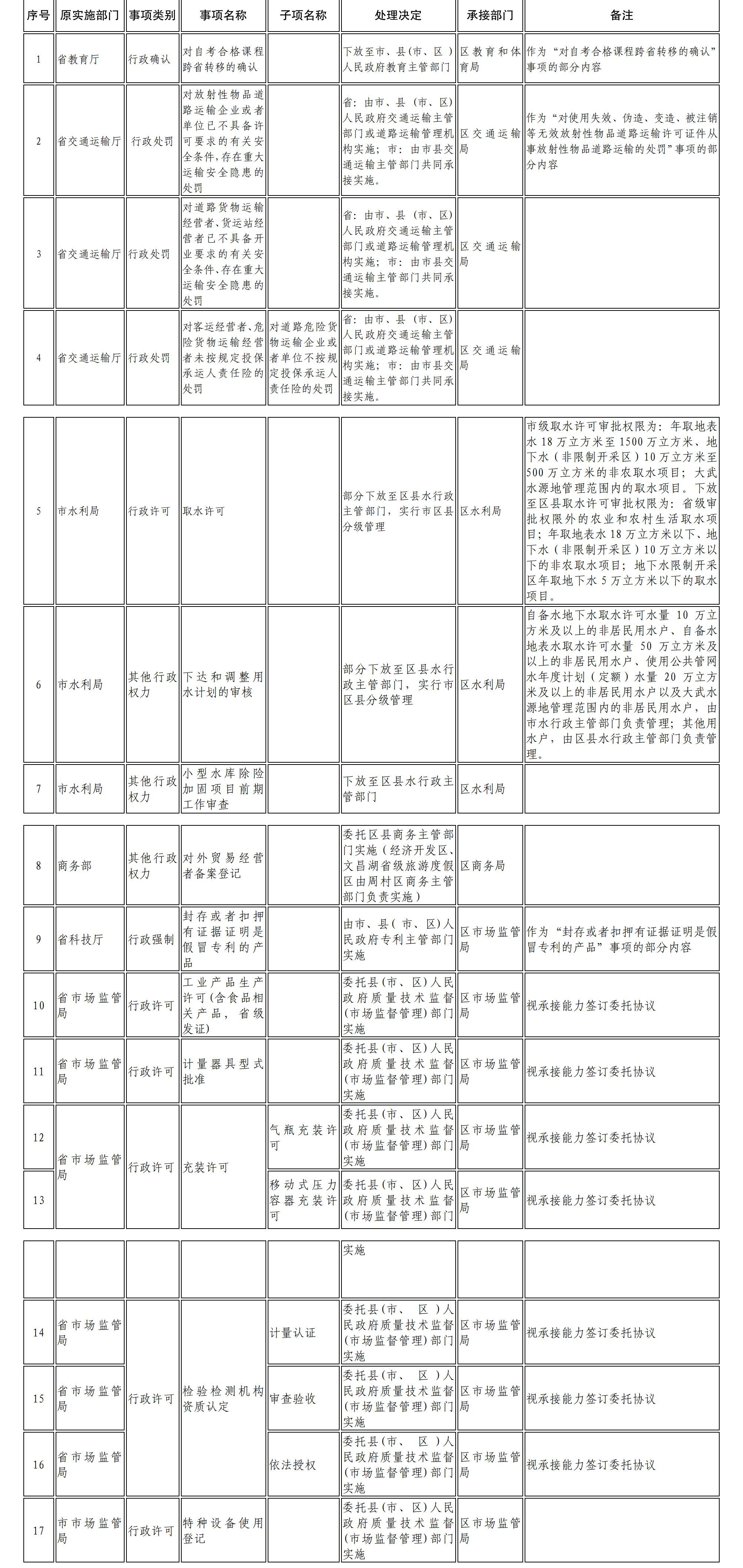 附件:1.根据省政府、市政府文件对应调整的区级行政权力事项目录