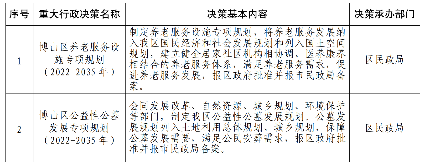 附件:博山区人民政府2023年度重大行政决策事项目录