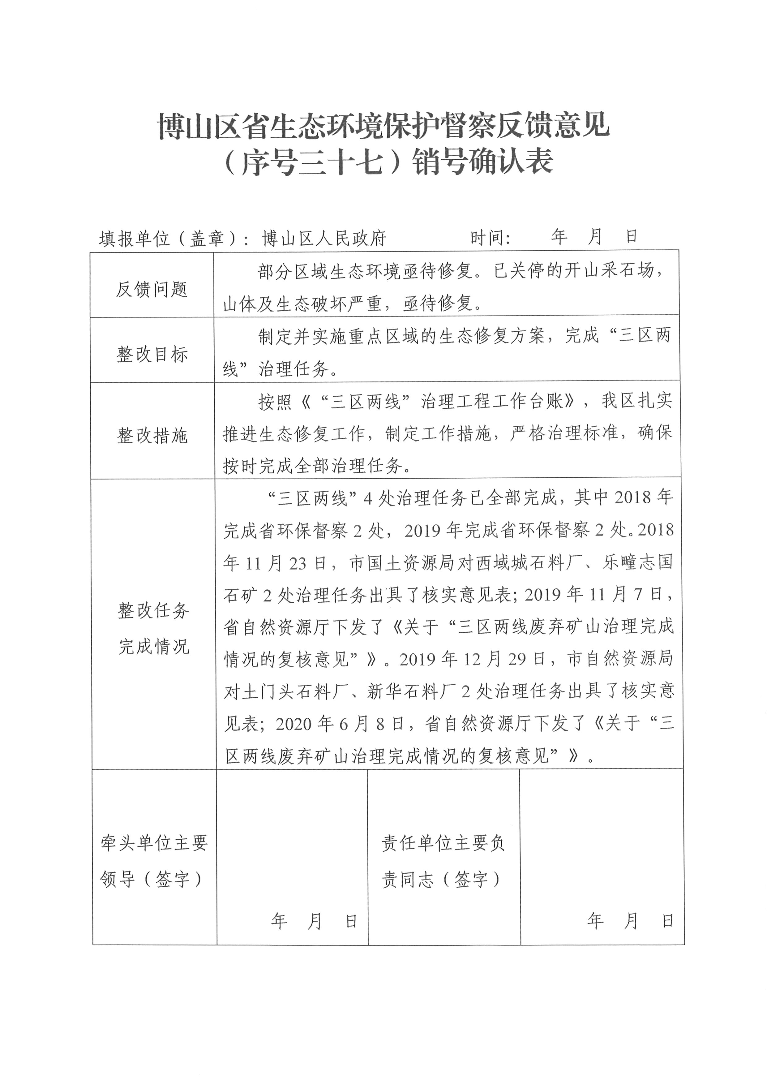 博山区省生态环境保护督察反馈意见(序号三十七)销号确认表