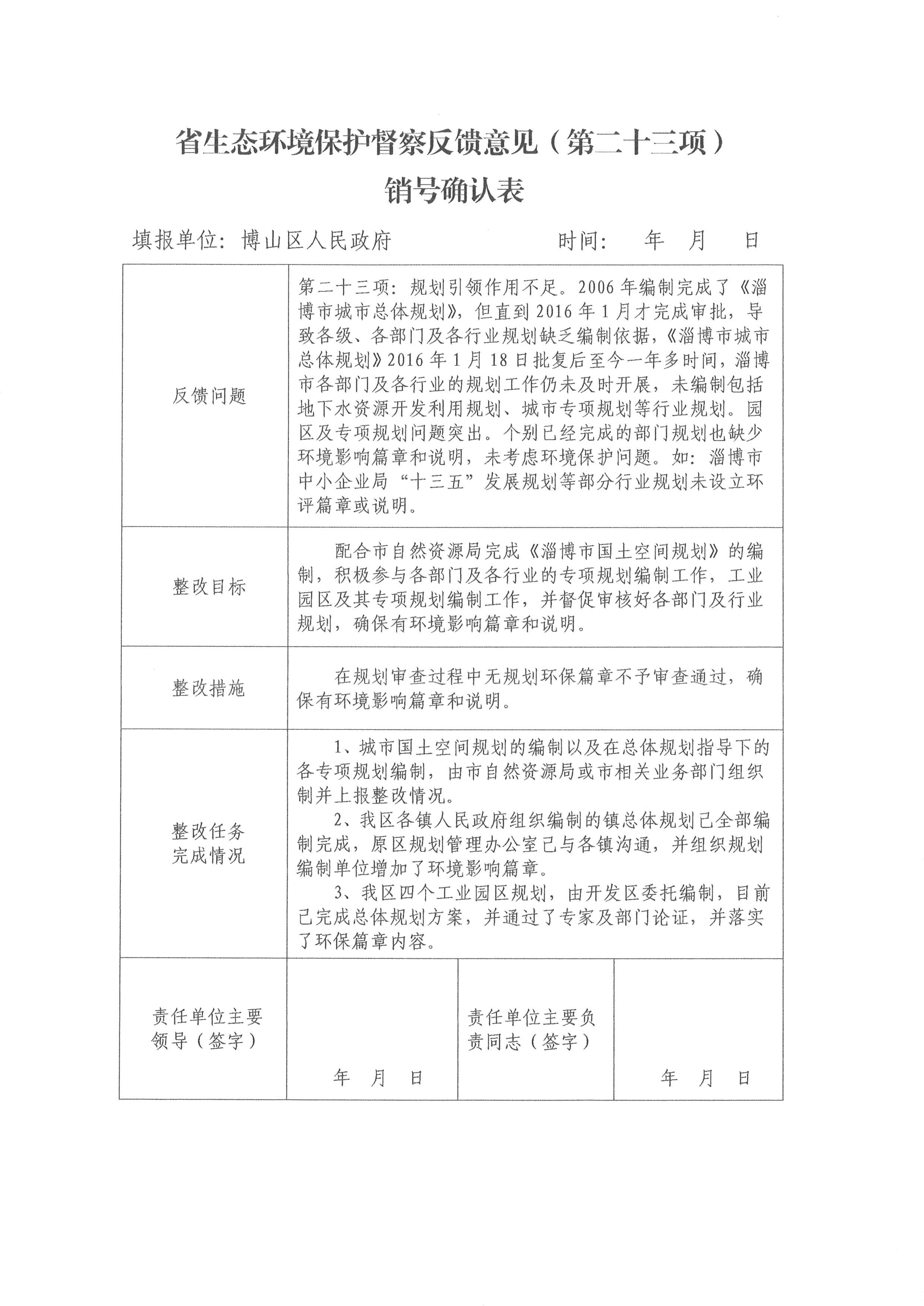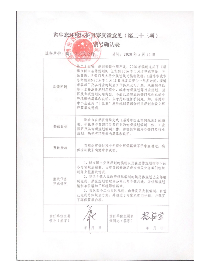 《省生态环境保护督查反馈意见(第二十三项)销号确认表》: